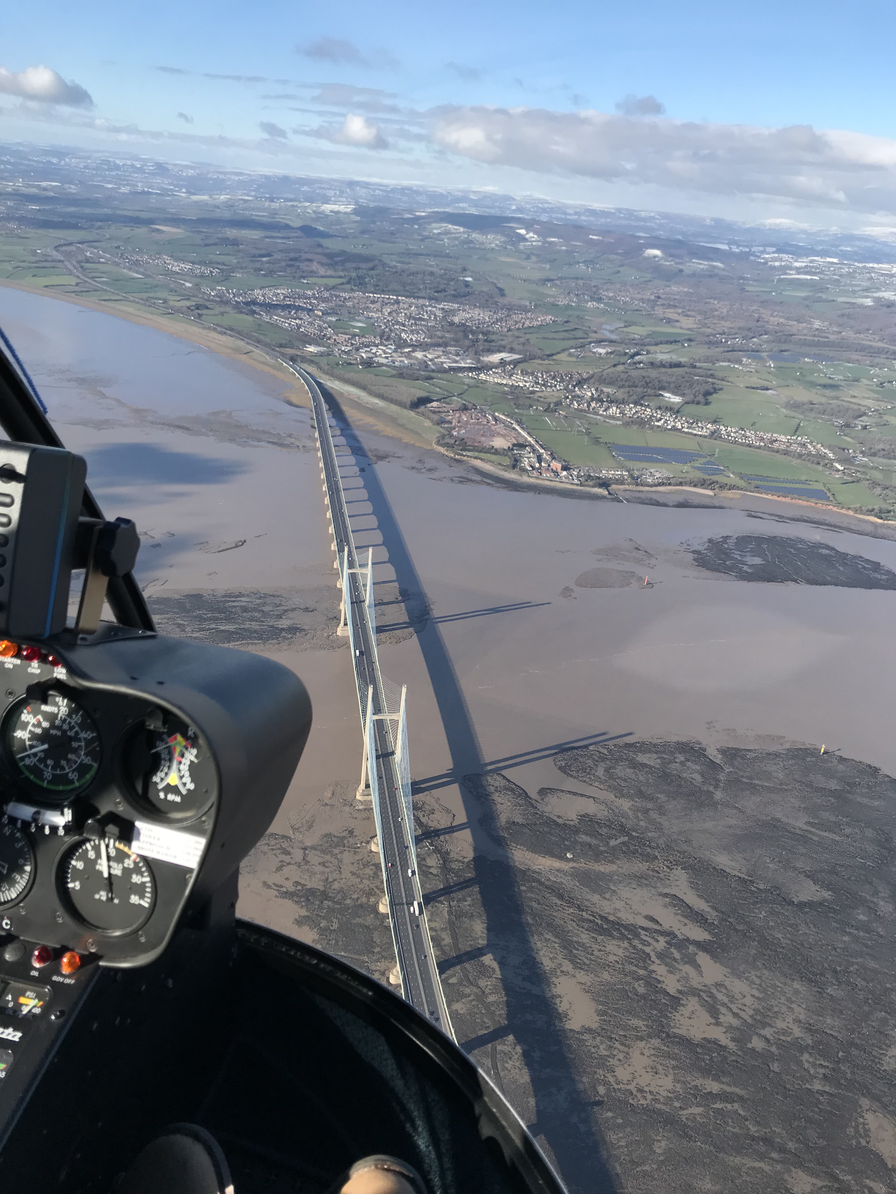 We lifted at 10:55 and departed via heli south, with full main and aux tanks. Following the M5 toward Dursley it was the line-break of the landscape. To the left of us was pure white, and immediately to the right was green rolling countryside through Cheltenham and Gloucester northwards. It was a stark difference. As we approached Thornbury, I called the initial call to Bristol Approach on 125.650, they passed me a squawk and routed me across the Avonmouth bridge and direct to East Nailsea, before tracking directly into the farm. We’d called them prior to let them know what we intended to do.