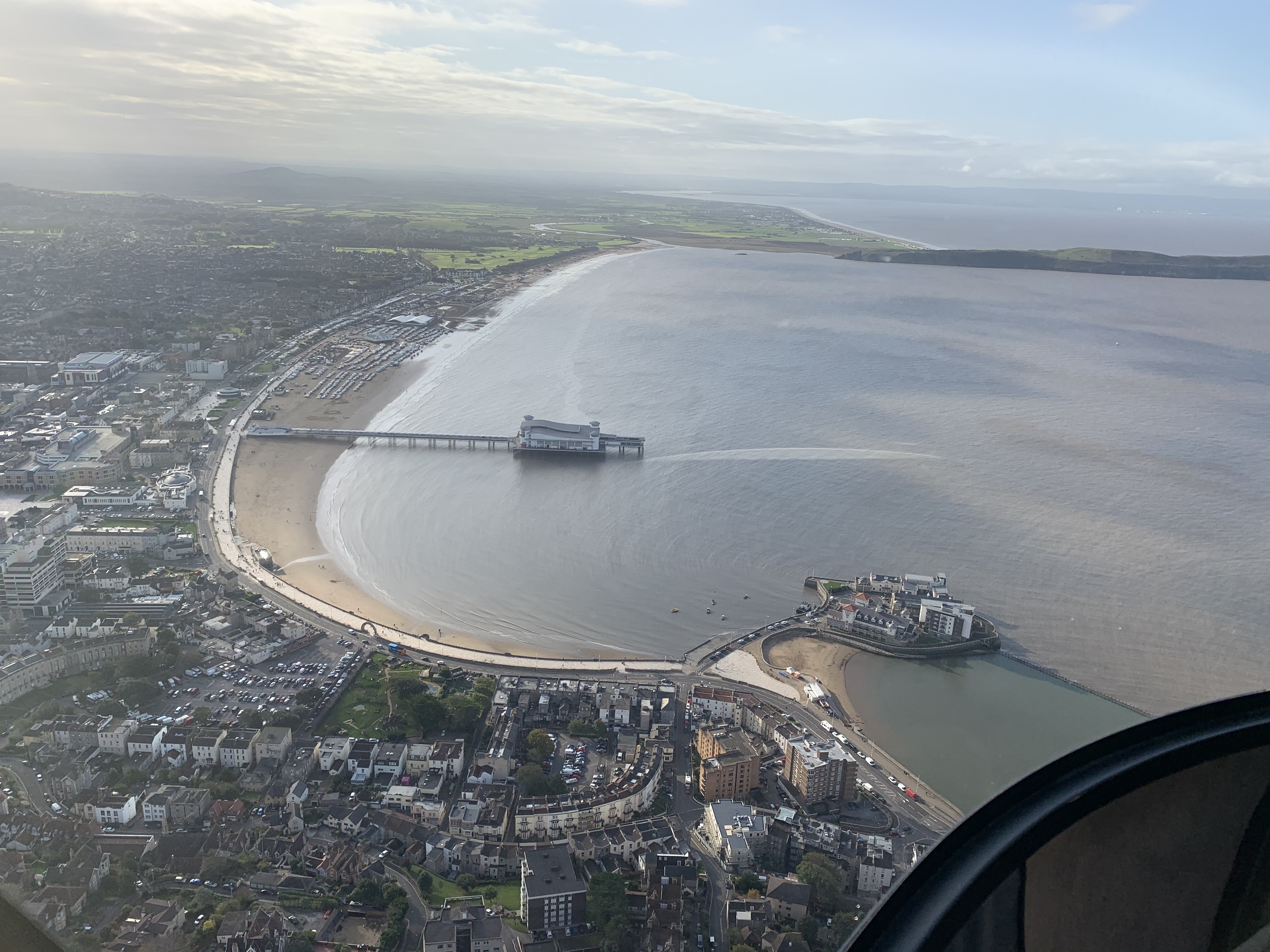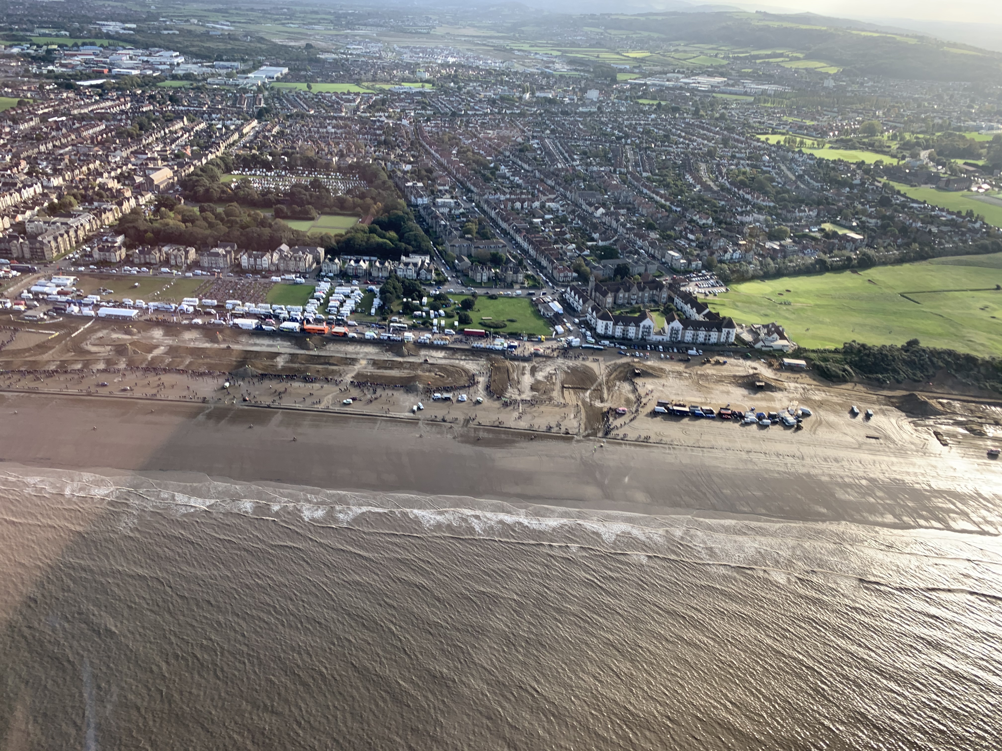 As I departed the Helicopter Museum, I took a route out to the South West and then turned for a flight along the beach over the Weston Beach Race. It was a poignant moment, as our family moved to Somerset from Warwickshire in 1996, so for my brother and I it has been home for our entire life. Now, he we were 13 years later, he was racing along Weston beach front flat-out through the wet sand, the sound of the motorbikes howling all around, and me 1200ft above, rotorblades hurling around and beating the air into submission and our parents watching from the beach front.