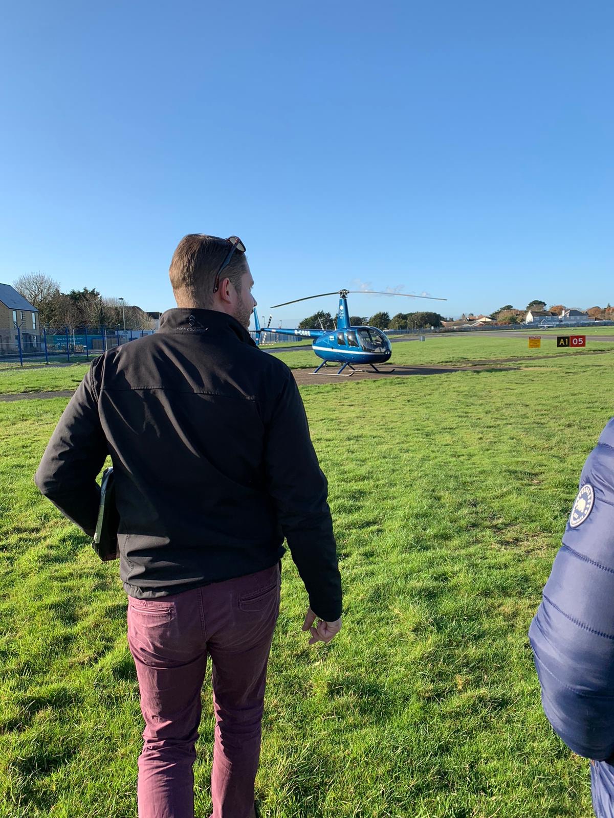 We were on the ground by 2pm, a suck of AVGAS and a slice of cake, and I was back in, rotors spinning and back off to Gloucester before sunset.